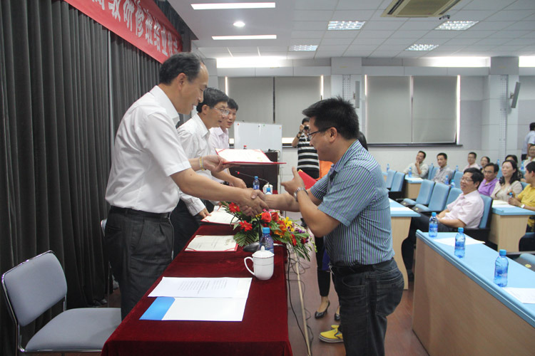 儀式上,市外經貿黨工委蔣書記、市委組織部干部三處周處長和寧波理工學院黨委書記費書記為班級中的優秀學員和優秀班委頒發了榮譽證書并合影留念。