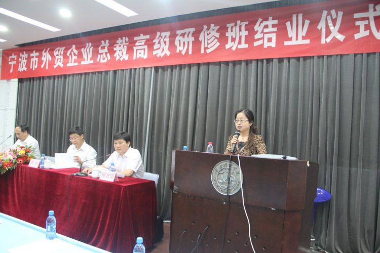 寧波賽爾集團朱玲作為研修班優秀學員發言。她提到,在一個半年的學習中,學到了很多專業的知識和具有實戰應用性的技能。在課程設計上,除了課堂內的教學外還增設了戶外課堂,在學到知識的同時,還結識了不少業內好友。并表示在今后的工作和生活中,同學們將繼續堅持不懈的學習,學有所獲、學以致用,優化知識結構,提高綜合素質,結合理論與實踐,在當前外貿形勢嚴峻的形勢下,以實際行動為推動我市經濟建設做出應有的貢獻!