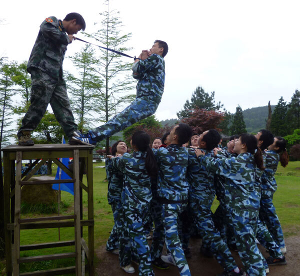 開班前,教練通過(guò)了一系列的歡快活動(dòng),把全體成員分為五隊(duì)(鷹之隊(duì)、屠龍隊(duì)、步步隊(duì)、牛哄哄隊(duì)、如意隊(duì)),參加了信任背摔、七巧板拼圖、盲人方陣、高空行走、接力傳遞球和凌空擊鼓等活動(dòng)。經(jīng)過(guò)激烈的比賽,強(qiáng)烈意識(shí)到:成功必須鍛煉意志和培養(yǎng)團(tuán)隊(duì)協(xié)作的品德情操。如高空行走時(shí)每個(gè)成員必須膽大心細(xì),敢于挑戰(zhàn),相互鼓勵(lì),戰(zhàn)勝恐懼;而凌空擊鼓講究的是同心協(xié)力,要有團(tuán)隊(duì)協(xié)作精神、要有絕對(duì)服從的思想、要有顧全大局的理念。