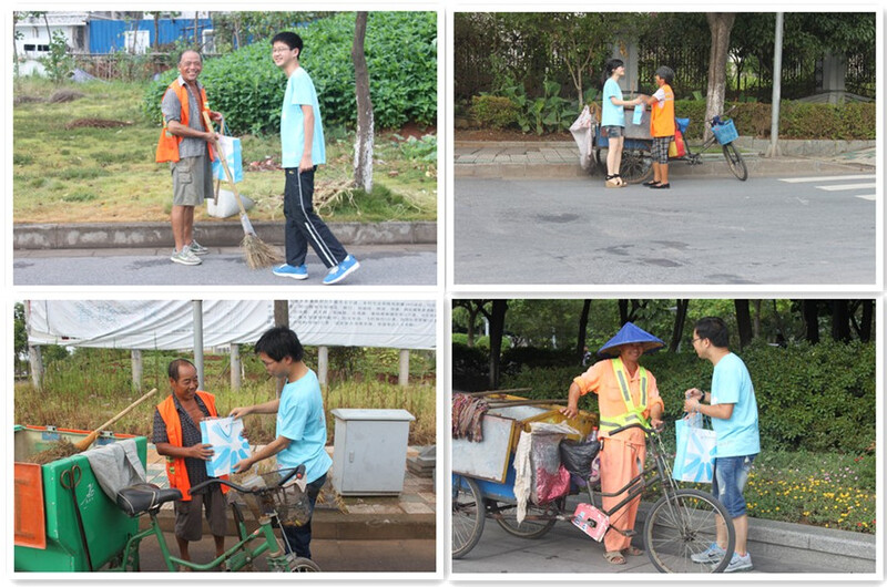 8月3日早上7點,集團義烏運營中心九位志愿者帶上藿香正氣水、毛巾、水杯和礦泉水等防暑降溫用品,準時從公司集合出發,途經北苑、市民廣場、福田市場等地段,慰問奮戰在一線的環衛保潔工人,給他們送上夏日的清涼和關愛。
