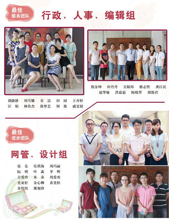 賽爾網(wǎng)訊 在二季度后勤評(píng)優(yōu)活動(dòng)中,行政、人事、編輯組榮獲“最佳服務(wù)團(tuán)隊(duì)”,網(wǎng)管、設(shè)計(jì)組榮獲“最佳進(jìn)步團(tuán)隊(duì)”獎(jiǎng)。