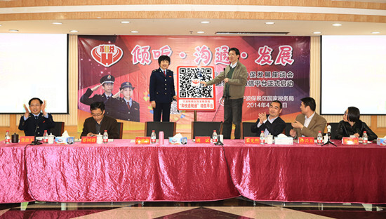 在姚處長和應局長共同為微信平臺簡短啟動后,夏佩紅科長詳細介紹了區國稅過去和近期針對出口企業的種種服務舉措。朱光煦局長宣傳了今年保稅區支持出口企業的主要政策內容。 與會領導廣泛聽取了各企業在退稅工作中所面臨的問題、困難和意見等并一一作了細致解答,最后姚處長作了總結講話。