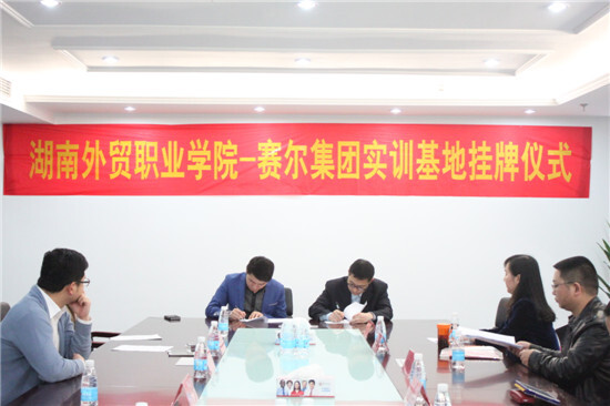 賽爾網(wǎng)訊 4月24日上午,我集團(tuán)與湖南外貿(mào)職業(yè)技術(shù)學(xué)院簽署校企合作協(xié)議,舉行校外實(shí)訓(xùn)基地和就業(yè)實(shí)習(xí)基地授牌儀式。學(xué)院黨委書記屈孝初、院長(zhǎng)唐瑾及相關(guān)老師,我集團(tuán)總裁助理喻進(jìn),業(yè)務(wù)總監(jiān)陳朝輝、韓科,行政副總監(jiān)龔江民等,參加了此次簽約儀式。