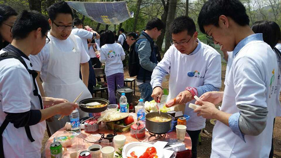 下山后,大家來到本次活動第二站:鄞州區鄞江鎮晴江岸,開始野炊。男生女生自由組合,有些瞬間化身廚神,大秀廚藝,在填飽隊員肚皮的同時,也俘獲了不少人的芳心。飯后,大家一起洗刷刷,清理垃圾,不為美麗的晴江留下一點負擔。