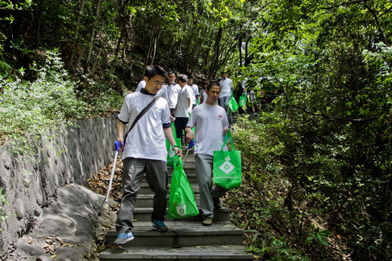 中坡山森林公園位于寧波西部的四明山上,是一個免費(fèi)對外開放的森林公園,好山好水好空氣,深受寧波老百姓喜愛,周末園內(nèi)人來人往,非常熱鬧。但比較遺憾的是,公園內(nèi)步道兩邊飲料瓶、食品包裝袋等垃圾較多,與自然美景很不協(xié)調(diào)。4月11日,我集團(tuán)和寧波市外經(jīng)貿(mào)局工會聯(lián)合,首次走進(jìn)中坡山森林公園,開展撿垃圾活動,倡導(dǎo)環(huán)境清潔理念,受到游人和當(dāng)?shù)佚堄^鄉(xiāng)政府的肯定。時隔半個月后,我集團(tuán)聯(lián)合寧波中信保公司團(tuán)委,雙方組織了30多位同事,再次走進(jìn)中坡山森林公園。