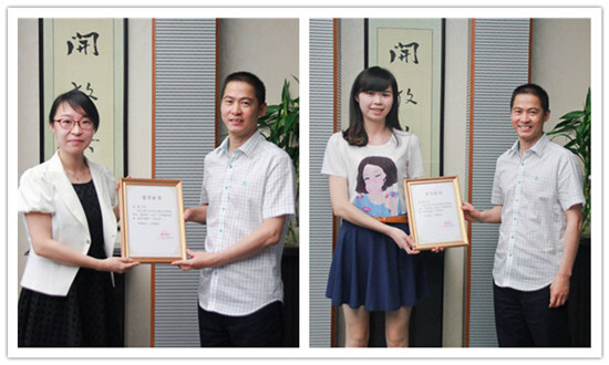 6月2日下午和6月4日上午,集團分別在義烏、寧波兩地舉行了“十佳名師”頒獎儀式,徐平炬總裁親自為“名師”們頒發榮譽證書并合影留念。4日上午還舉行了視頻會議,徐總、方總和“十佳名師”獲得者、名師徒弟代表、綜合行政部編輯組等參加了會議。