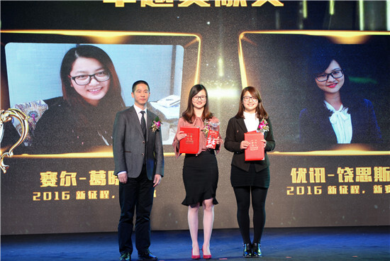 大會首先表彰了集團2015年度優秀員工。集團運營決策委員會分別為每位獲獎者頒發了獎杯、證書和獎金。賽爾國貿葛曉青、優訊進出口饒思斯憑借優異業績摘得集團“卓越貢獻獎”;賽爾國貿沈孝蘭等34人榮獲集團“優秀業務獎”;集團財務管理部陳萍等19人榮獲集團“最佳服務獎”;賽爾國貿袁勝男等轉正一年內表現突出的15位新員工代表榮獲集團“新星獎”。70余位獲優人員是優秀賽爾人的杰出代表,讓我們向優秀致敬!為佳績喝彩!