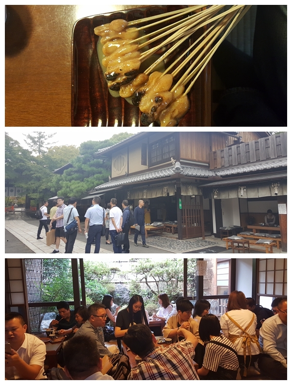 21日下午,大家參觀了京都千年老店一和年糕鋪,鋪?zhàn)与m小,經(jīng)營(yíng)品種也很單一,只有烤麻糬,但憑著對(duì)祖上這份手藝的堅(jiān)守,傳承了25代人1018年,店面也一直在今宮神社邊上,這種“守護(hù)家族”的精神讓人感嘆不已。