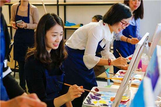 一邊聽著音樂,一邊享用茶歇,一邊創(chuàng)作作品,時很快就過去了。是的,不談工作,不談教學(xué),就是要這么放松。期待2周后我們的陶藝油畫成品。