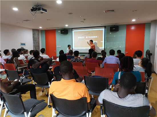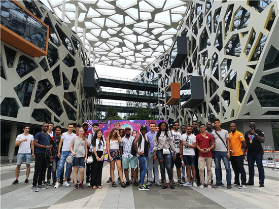 第二天是在西湖邊,我們登上六合塔。吃過中飯后,我們來到了阿里巴巴,來看看我們天天都在用的淘寶爸爸。接待的經理為我們講述了阿里由十八羅漢發展到現在的五萬人的歷程,留學生聽得很認真,還有留學生提出是否可以和阿里合作,工作人員笑著說具體可以和公司的人事部門對接。接下來,我們參觀了濱江園區的六棟辦公樓,大家爭著在大廳拍照,阿里酷里面的紀念品也受到留學生們的喜愛,有學生說阿里的辦公環境真好,畢業后要來應聘工作。
