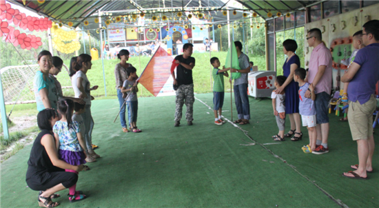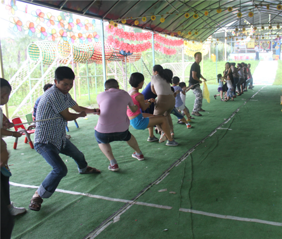 親子拔河比賽,把整個游戲推向高潮,各位辣爸靚媽們帶領自己的孩子使出渾身解數(shù),力圖把對方拉到自己的陣營,三局兩勝,我們的紅隊最后獲勝。