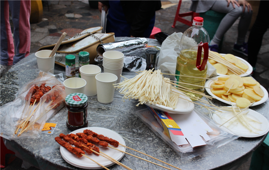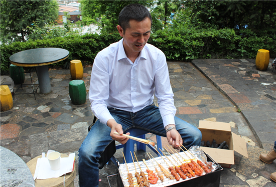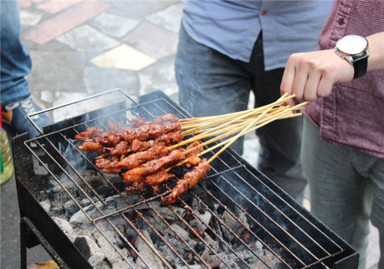 學起新疆買買提的吆喝聲,噴香的烤羊肉串爐火正旺,香氣撲鼻,怎一個“饞”字了得!