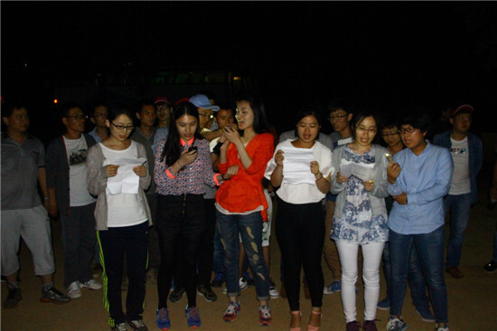 籃球賽結(jié)束后,迎來的是一頓菜多肉少、僧多粥少的晚餐,之后就是大家的自由活動(dòng)時(shí)間了,在那風(fēng)高黑夜,有人沿著山路找尋著傳說中的南北湖,有人干脆回房牛牛了,也有人玩起了殺人游戲。