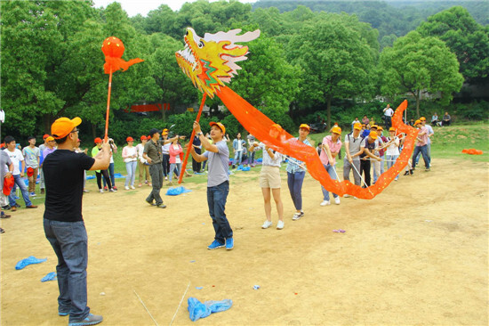 5月25日,多云悶熱的天氣。最后半日的活動(dòng)中,各國的競(jìng)爭(zhēng)進(jìn)入到了白熱化的階段,忘不了義烏張總在攻城拔寨的環(huán)節(jié)中多次詐尸還魂。印象最深的莫過于最后的龍舞天下,三國的小伙伴們各展才藝,畫出了各自心目中的龍,繡出了各類炫的龍珠。青龍、火龍、霸王龍(抑或是卡通龍或娃娃龍)都盡情舞出了各自的風(fēng)采。