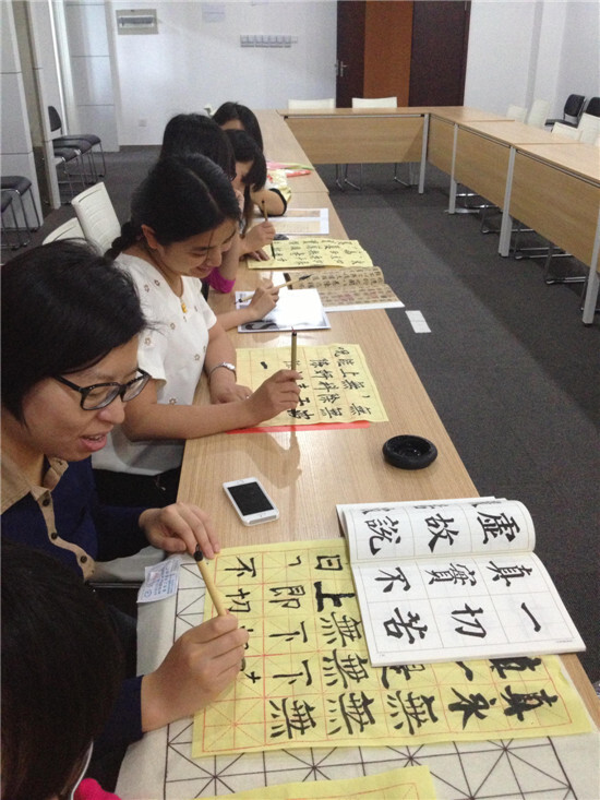 午間小憩,沉寂的酣睡聲阻擋不了輕騷動的青春,優景公司推出每周二、周四中午1點書法練習活動,怡情怡性。