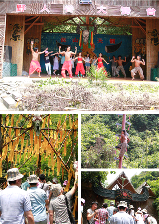 走出鬼城,眼前豁然開(kāi)朗,“野人谷”三個(gè)大字映入眼簾。由阿佤山寨、圣水屋、恐怖地帶、迎賓區(qū)、野人舞蹈、特技踩玻璃、上刀山、跳火舞等節(jié)目組成的另類(lèi)景色,返璞歸真的原始森林部落讓人有如世外桃源一般。