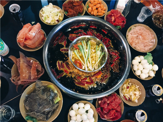 剛下飛機(jī),落地重慶,各具特色的火鍋店遍地可見,吃貨團(tuán)麻利地選擇了一家接地氣的火鍋店,開啟了瘋狂掃蕩模式,不得不說重慶老火鍋真是辣到驚心動(dòng)魄,辣得靈魂出竅,怎一個(gè)爽字了得!