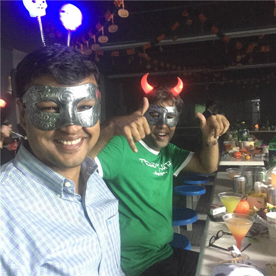 精致的甜點,美味的水果,搖曳的雞尾酒,伙伴們在欣賞節目,玩轉游戲的同時,盡情享受了一整晚的休閑快樂時光,一名巴基斯坦的國際友人表示:“沒想到在中國還能夠過這樣的節日,真的非常開心,節目的氛圍和表演都非常好,不過打扮如果更萬圣節一點就會更有趣” ,“認真的人恐怕是有共性的,認真的工作,認真的娛樂,很開心能夠加入到賽爾,很感謝賽爾提供給我們這樣一個氛圍。”一名剛加入公司的新人伙伴如此說道。