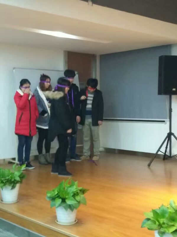 第二個游戲是“蒙眼過障礙”,選了兩名同事蒙住眼睛,其他同事充當指揮。被蒙住眼睛的選手在通過障礙時就會做出各種滑稽的搞笑動作,令人捧腹大笑,后來同事們悄悄把障礙物給撤了,但是被蒙住雙眼的同事毫不知情,還是做著夸張的動作,非常搞笑。
