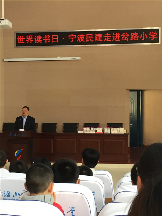 4月22日上午,在第22個“世界讀書日”來臨之際,寧波民建會員在寧波市政協副主席、民建寧波市委會主委張明華的帶領下來到寧??h岔路小學,開展“讓我們在閱讀中一起成長”為主題的民建“同心閱覽室”成立暨贈書活動。