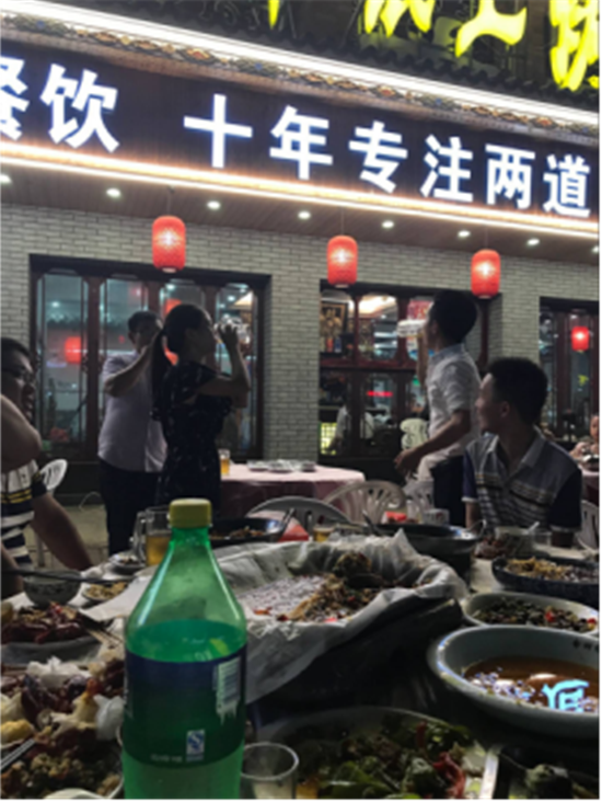 夜市街邊的大排檔燈火明亮,各色菜肴擺了滿滿一桌,烤魚、牛蛙、干鍋、龍蝦……應(yīng)有盡有!別看大家平時都是淑女,Gentleman,在美食面前,一個個都顧不上形象,嘴下毫不留情。不過似乎這種狼吞虎咽、大快朵頤、無所顧忌的樣子和大排檔更配!沒錯,吃得爽快,那是對人生最起碼的尊敬。冰爽的扎啤,算是大排檔的黃金搭檔沒有之一,幾杯下去,男同學(xué)們明顯嗨了起來,你敬我一杯,我還你兩杯,根本停不下來。幾個機(jī)智的軟妹紙,端起杯中82年的雪碧、可樂,霸氣地和采購男神們拼起“酒”來。