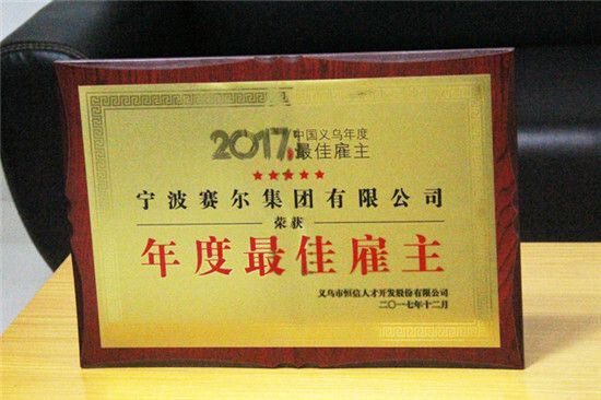 在頒獎典禮上,賽爾集團同時摘得“2017年義烏年度最佳雇主30強”及“最具發展潛力雇主”兩項殊榮。今年是賽爾第三年蟬聯最佳雇主,成為義烏雇主品牌的標桿企業之一。