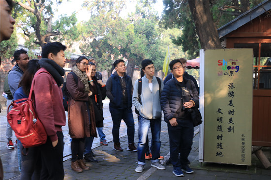 DAY1 經過四個多小時的高鐵,留學生一行終于抵達了曲阜,旅途的疲憊并沒有消減同學們的熱情。在游覽過程中,大家都驚嘆于中華悠久歷史、上千年的文明、上百年的建筑,還有各種上古神獸,我的耳邊都是“wow,this is amazing.it’s unbelievable”這樣的贊嘆,一股自豪感油然而生。