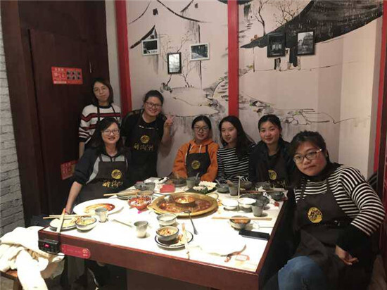 約定的當天下午出了一些小意外,小葉的貨急需返工,兩個組的姑涼們毫不猶豫地一起去倉庫幫忙。經(jīng)過一番熱火朝天的努力后,全員終于在8點半集合來到義烏之心。疲憊和饑餓讓姑涼們都放下了矜持,大快朵頤,大家拉拉家常,聊聊八卦,笑聲不斷。