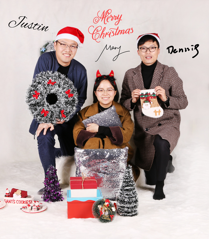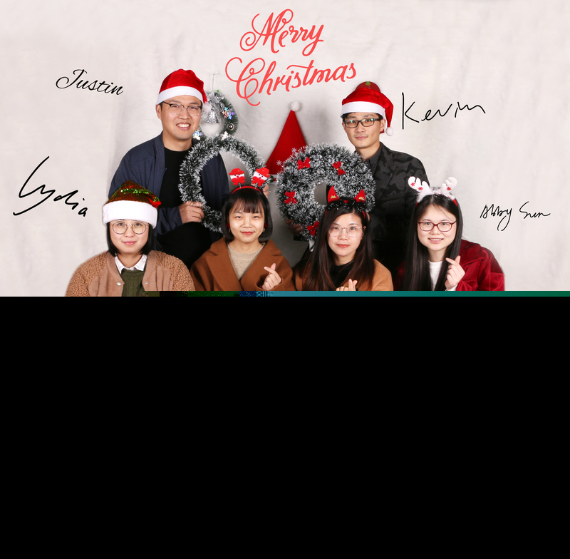 我們利用圣誕花環、圣誕樹、圣誕襪、圣誕擺件等各類節日裝飾品,以白色絨布為背景,打造了一個溫暖喜慶的布景。隨后按照公司各個小組的順序,以重要客戶為對象,進行不同的序列組合拍攝團體照。另外,我們還收集了每一位業務員的英文電子簽名,標注在每個人照片旁邊,以便給客戶留下更深刻的印象。拍完照之后,我們在上面加上了祝福語和親筆電子簽名,最后制作出了一張張別出心裁的精美圣誕節專屬賀卡。
