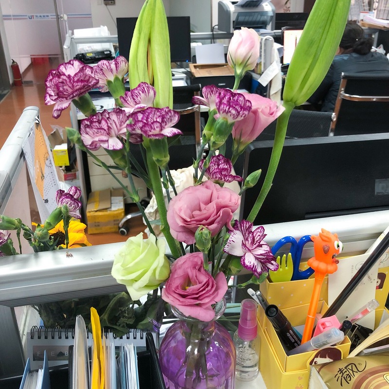 今年的女神節,我們公司過得其實比往年要早。因為早在節日前4天,我們的“后勤部長”毛鈺雪同志就已經為全公司采購了真正的鮮花。從4天前的含苞待放到如今的花開正盛,辦公室已被鮮花包圍,看得人心情也美麗了起來。