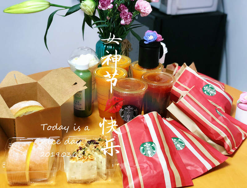 第二份小禮物來自星爸爸的下午茶,“后勤部長”親自上陣,拉了財務的小姑娘充當了一波“快遞小妹”。與去年的元宵不同,張總竟然在女神節成功翻身上位,擺脫吃贈品的慘境,喝上了他認為味道怪怪的冰搖芒果花草茶。