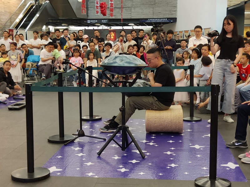 音樂會以一聲敲鑼聲打響,第一個演奏的是手碟,將全場躁動的心一下帶入平靜和舒適。隨后啄木鳥人聲樂團帶來的歌聲仿佛又帶你來到一片幽靜的森林,聽著布谷鳥的私語,內(nèi)心不再躁動。每一段音樂旅程的結(jié)束和開始都是伴隨著缽聲,寧靜幽遠,像是疏通了所有的氣脈,等待音樂的洗禮。