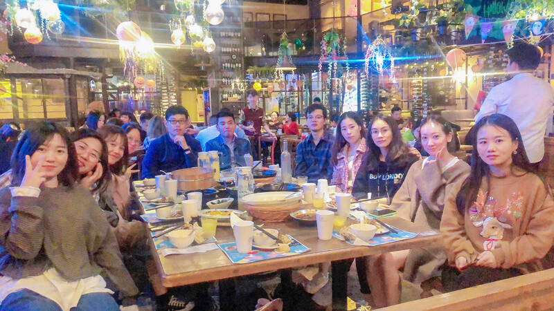 晚上7點,大家在胡桃里餐廳進行首次聚餐。餐廳里有歌手駐唱,大家一邊吃著飯一邊欣賞音樂,有種特別放松的感覺。