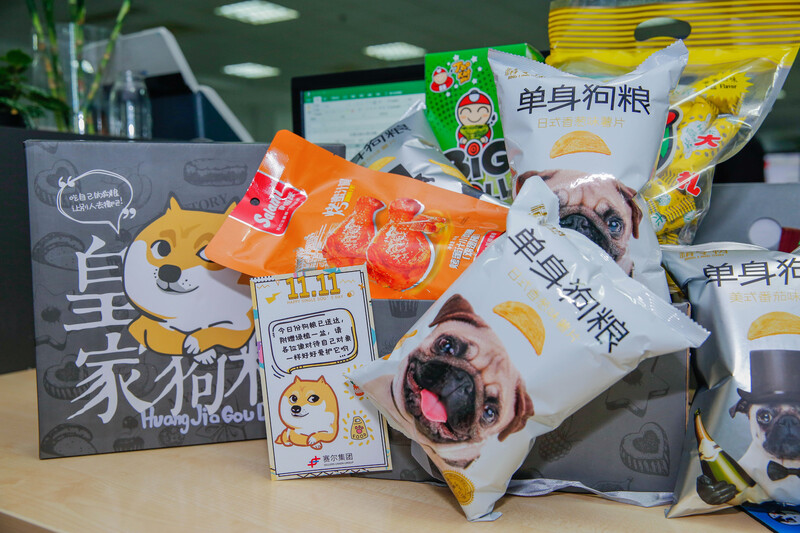 就在雙十一當天,一大盒狗糧就這么堂而皇之地進行了大規模分派。薯片、山藥片、海苔,再加上童年同款長鼻王,好吃到停不下來。吃累了,看會兒可愛的羅漢松休息一下,看著眼前的綠色,心情也舒暢了許多。