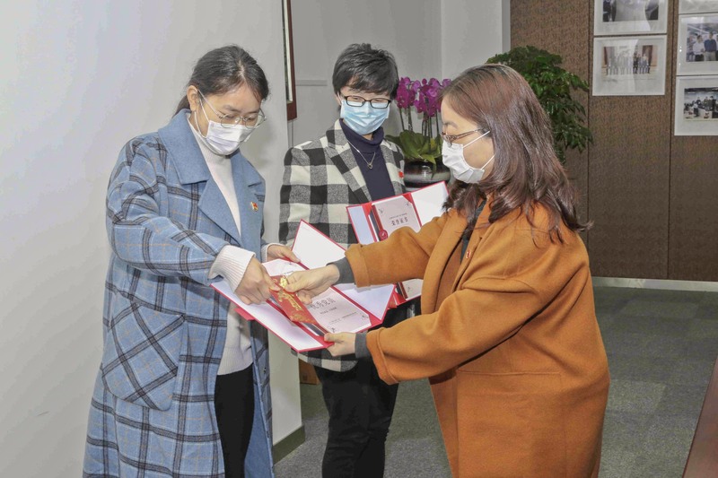 大會的第二項議程是2019年優秀黨員和優秀黨組的表彰,賽爾集團黨支部朱玲書記和義烏支部徐生科書記分別為周玲燕、周慧、王鴻雁三位同志以及第三小組頒發優秀黨員和優秀黨組的榮譽證書和獎金。