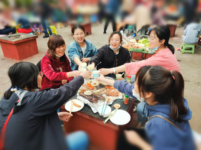 活了動,出了汗,是時候該犒勞一下自己的肚子了。食材和燒烤爐準(zhǔn)備就緒,大家開始認(rèn)真地?zé)尽?/p>