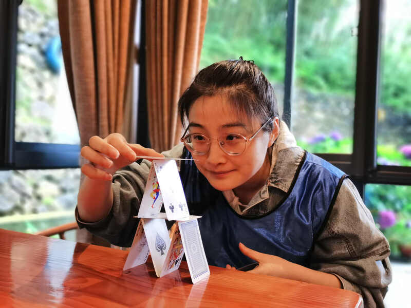 盡管天公不作美,卻絲毫沒有影響大家的心情。入住別墅稍事休息后,吹乒乓球、疊紙牌和猜紙卡的小游戲開始點燃了大家的勝負欲。