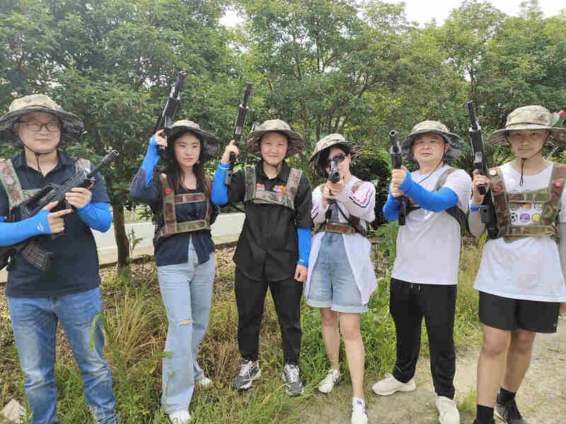 看完瀑布之后,我們迎來了此次團建的高潮——CS真人賽,四位隊長各立軍令狀,兩兩PK。守方在場地內(nèi)埋伏好,等待攻方進入陣地。兩隊要在最短的時間內(nèi)進行戰(zhàn)斗“廝殺”,“消滅”對方。戰(zhàn)斗結(jié)束,大家熱得滿身是汗,卻還意猶未盡,興奮之余也對團隊有了更深的了解。