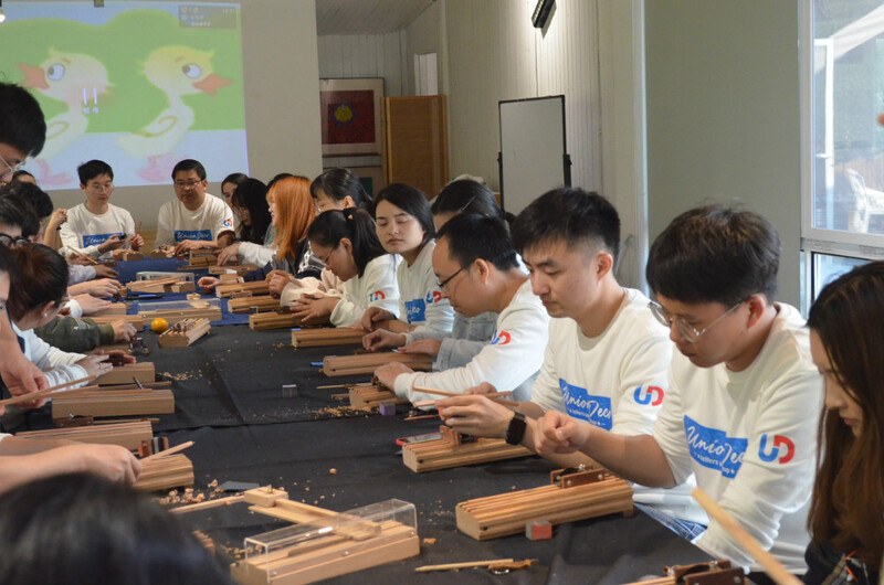 餐后是手工筷子制作環節。遠離大城市的喧囂,靜下心來,用大自然饋贈的最有溫度的材料,經過刨削、打磨、刻字、上蠟這幾道工序,制作出那雙獨一無二的筷子,愿優德的小伙都能“筷”樂常伴。