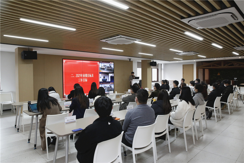 會議上,謝總總結(jié)了公司2020的業(yè)績表現(xiàn)并分析了不足之處,同時公布了2021年的目標(biāo)、獎勵機制等。謝總指出,未來綠時對內(nèi)要搭團隊、發(fā)展優(yōu)質(zhì)供應(yīng)商,對外要做客戶,既要抓住機遇,同時要關(guān)注業(yè)務(wù)走勢,把控好風(fēng)險。