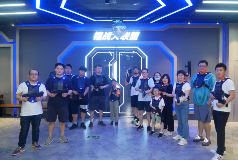 隨后,我們來到了綠地繽紛城的高科技“鐳戰大聯盟真人cs”。大家按順序穿好了感應服,分成兩隊后,教官開始給我們講解槍支使用方式。試槍結束后,“戰爭”便開始了。全程分為四種主題模式,四場積分累計,每場大概15分鐘左右,中間有休息的時間,每場結束都能在外面看到個人團隊的戰績。大家都非常認真,每場結束后,各個大汗淋漓,氣喘吁吁,極大的運動量讓大家釋放了在工作中的壓力。
