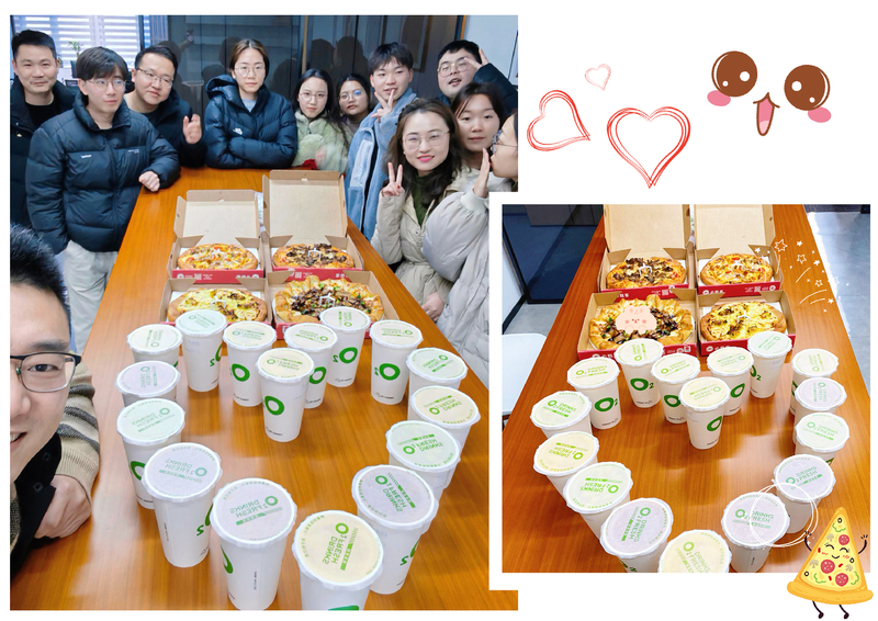 所有綠時業務一部員工來到茶水間,陽光恰到好處地照在大家臉上,每個人臉上洋溢著喜悅,工作熱情迅速都被調動起來。大家喝著鮮榨果汁,吃著披薩,共同慶祝部門成果,并暗自下定決心為新的目標努力。桌上的下午茶代表著今年新的開始,整個部門都干勁滿滿,充滿著對新的一年的期待。