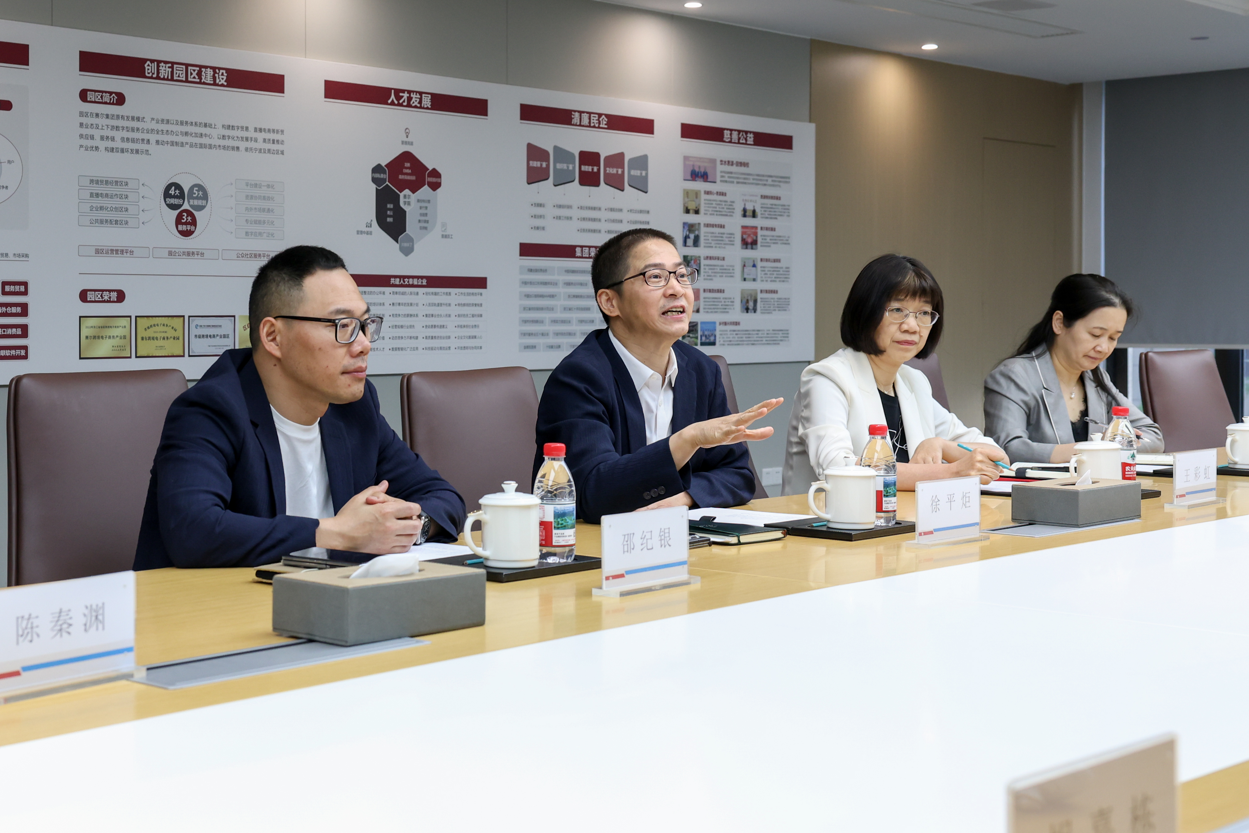 4月15日下午,浙商銀行寧波分行行長呂元旦等領導一行調研賽爾集團。集團董事長徐平炬、副總裁王彩虹、優遠公司總經理邵紀銀等熱情接待。
