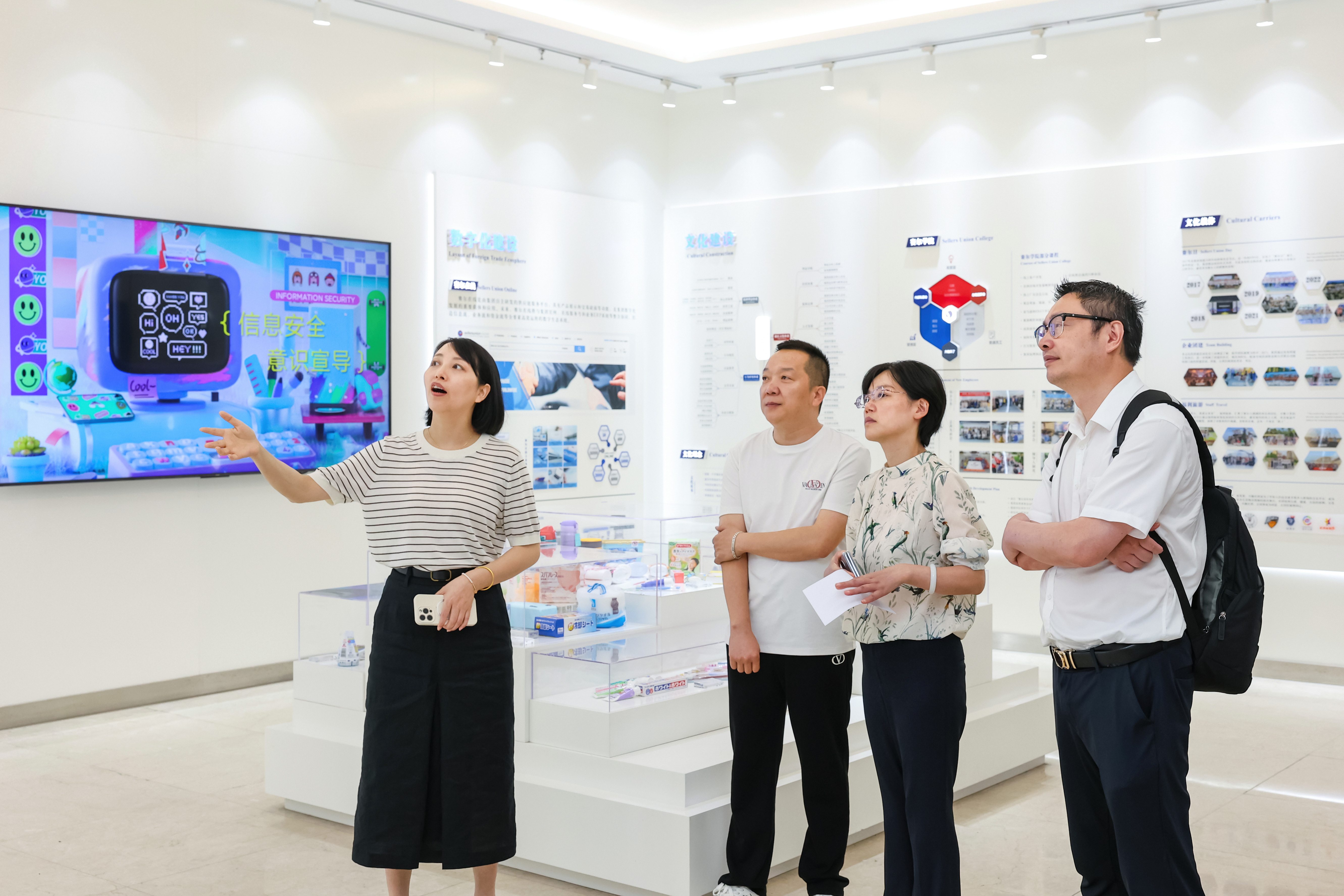 在企業(yè)文化展廳,調(diào)研組領(lǐng)導(dǎo)一行深入了解集團的發(fā)展歷程、管理機制、業(yè)務(wù)版塊以及企業(yè)文化建設(shè)等方面情況。伍淑亞副總經(jīng)理重點介紹了集團在企業(yè)管理方面的特色舉措。持續(xù)推進流程精簡化,例如,審批流程不超過三級,有效提升運營效率;持續(xù)完善與業(yè)績直接掛鉤的激勵機制,鼓勵員工充分發(fā)揮主觀能動性和聰明才智,為團隊創(chuàng)造更高價值,同時也共享收益、贏得晉升機會,表現(xiàn)卓越的員工有機會成為團隊負(fù)責(zé)人。調(diào)研組領(lǐng)導(dǎo)對集團在管理運營模式上的特色做法和取得成果給予肯定,并鼓勵集團在未來發(fā)展中,繼續(xù)秉保持穩(wěn)中求進的發(fā)展,充分發(fā)揮自身的引領(lǐng)帶頭作用。