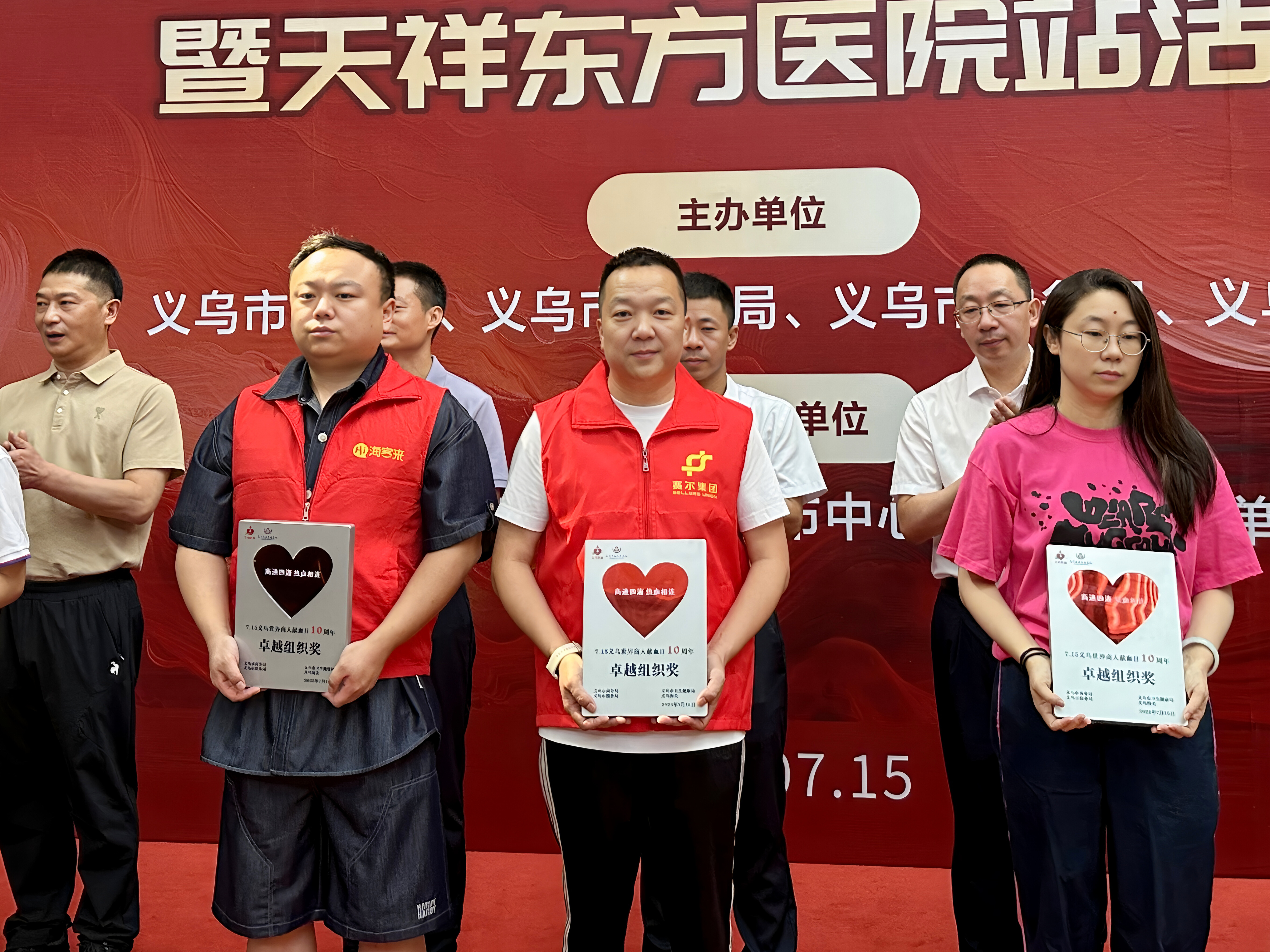 7月15日上午,“商通四海 熱血相連”第十屆7?15義烏世界商人獻血日主會場活動在天祥東方醫院隆重舉行。本屆活動由義烏市商務局、衛健局、稅務局、海關等單位聯合主辦,30余家中外商人團體攜手承辦。作為義烏市外貿出口領軍企業,賽爾集團受邀出席本次十周年活動,集團綜合行政部總監龔江民、各公司和職能部門的15名代表共同參加。