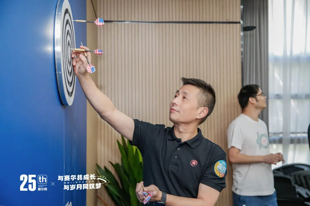 單項競技是賽爾日延續(xù)4年的運(yùn)動傳統(tǒng),本次賽爾周精選四個項目:飛鏢、彎腰過桿、立定跳遠(yuǎn)和平板支撐。寧波飛鏢項目冠軍,威司那公司周邵斌說:“單項比賽辦得越來越好,形式上和宣傳上也愈發(fā)能夠突顯賽爾的文化底蘊(yùn)。”連續(xù)四年擔(dān)任裁判的集團(tuán)行政部王繼勤說:“每年都有很多熟悉面孔,大家的狀態(tài)逐年上升,凝聚力和默契度越來越好,這和集團(tuán)整體的向上風(fēng)貌息息相關(guān)。”