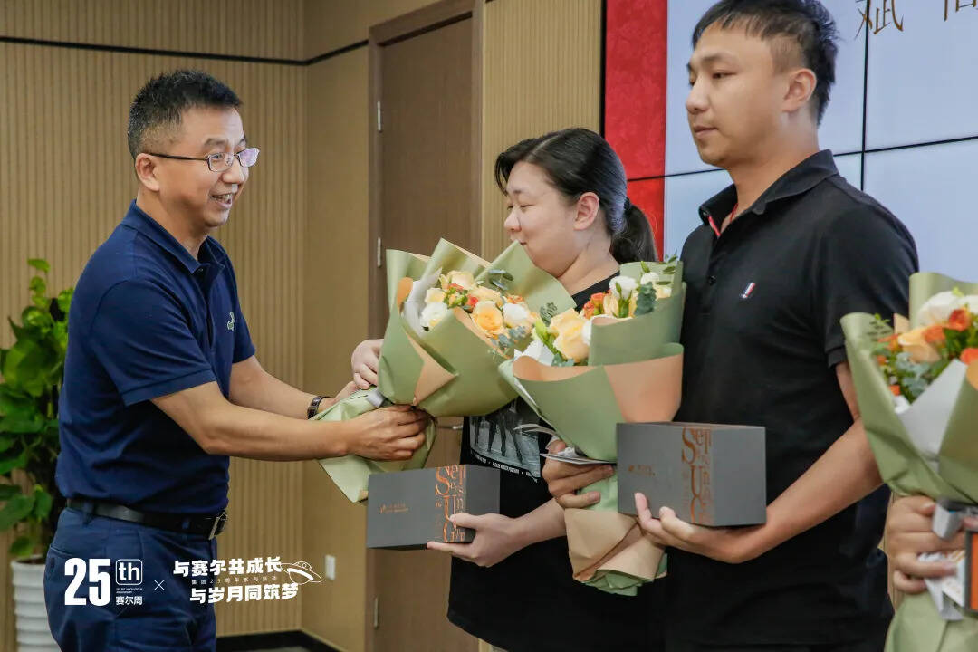 現(xiàn)場,員工們感謝了家人的理解和支持,也分享了各自的家庭故事:有為兒媳放棄熟悉環(huán)境,定居寧波的“賽爾好公婆”;有日常接送、貼心送飯,默默支持妻子近20年的“資深賽爾家屬”;有照顧家庭孩子,讓丈夫無后顧之憂,還時不時來集團(tuán)幫忙處理工作的“賽爾賢內(nèi)助”……