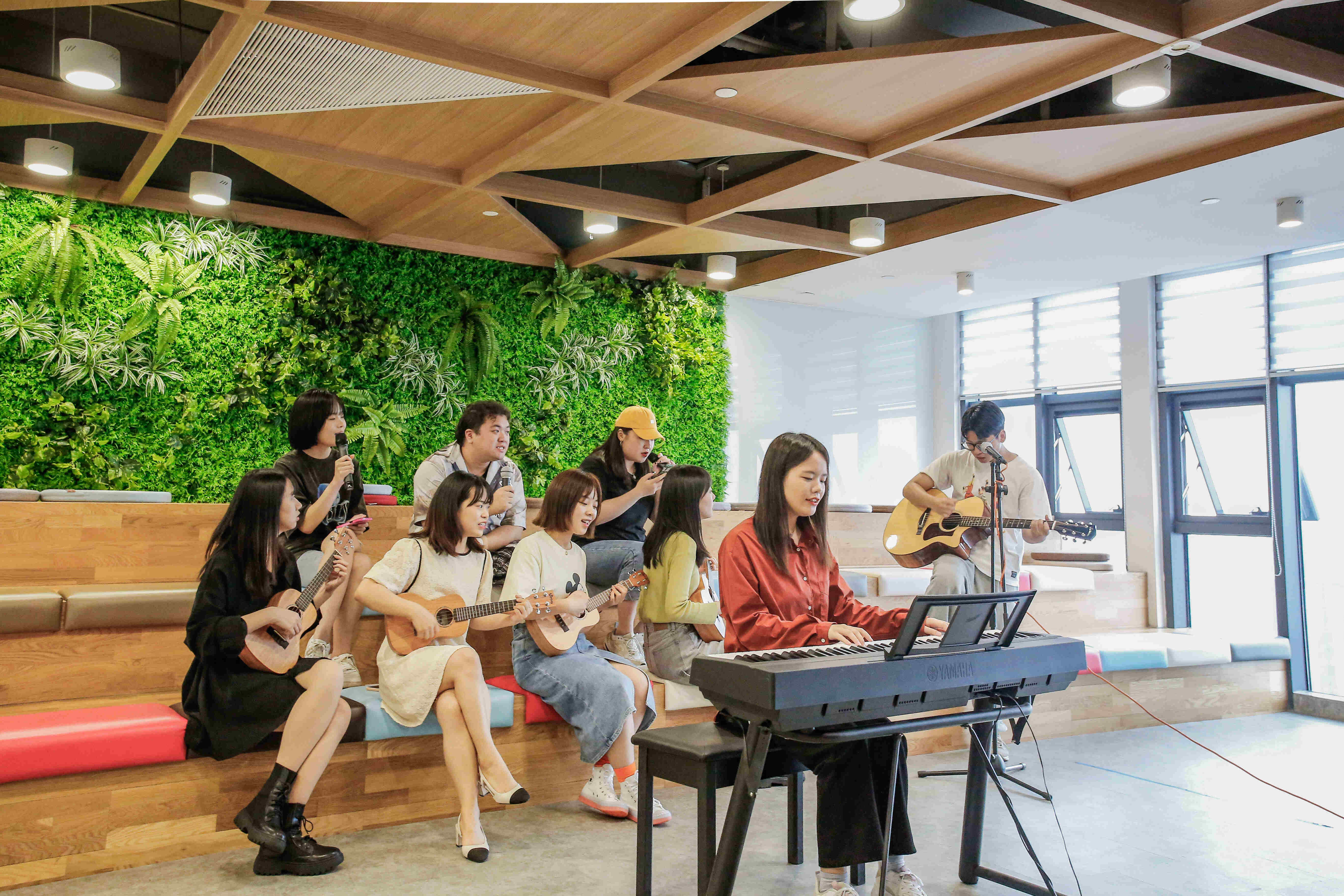 音樂社擁有一批擅長樂器、熱愛音樂的社員,已經開展了線上K歌大賽、聲樂課、天臺音樂會、折疊鋼琴課程等活動。此次草坪音樂會上,多才多藝的愛樂社員們為員工獻上一場精彩的音樂會。讓音樂療愈你的心情、裝飾你的生活。